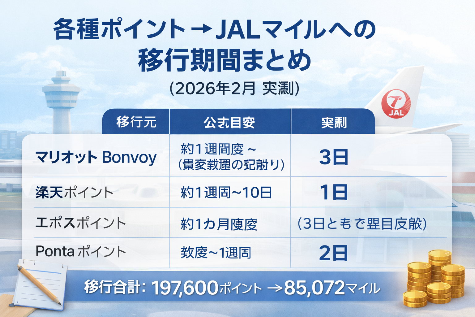 「JALマイルへの移行は時間がかかる」とよく言われますが、実際に交換してみると想像以上にスムーズでした。